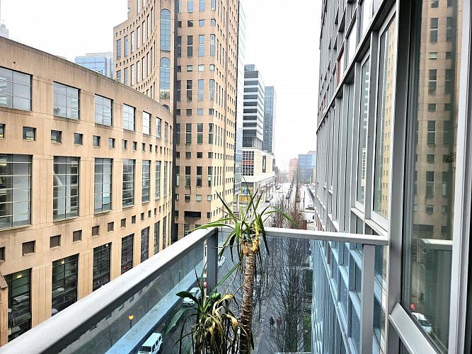 Welcome to TV Tower 1 by Concord Pacific! This exceptionally spacious 1-bedroom home offers incredible versatility with a large flex space and a separate den, perfect for a home office, guest area, or extra storage. The open-concept layout features a modern kitchen with a spacious bar area, flowing seamlessly into the living/dining space. Step onto your balcony overlooking Library Square and soak in iconic downtown views. Located in the heart of downtown Vancouver, just a 10-min walk to both the Canada Line & Expo Line SkyTrain stations. Steps from Yaletown, BC Place, Rogers Arena, Pacific Centre, and Robson Street. Enjoy 24-hour concierge, a hot tub, sauna, steam room, gym, movie theatre, and party room. 1 parking included. Book your showing today!