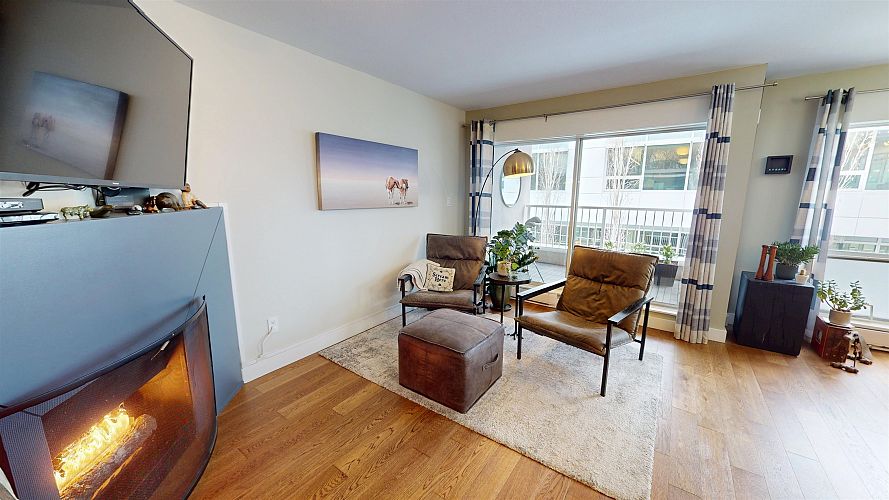 FULLY RENOVATED in 2020, this stylish PENTHOUSE unit in the rain-screened, concrete Monte Carlo building is a MUST-SEE. Featuring walnut engineered hardwood floors, a designer kitchen with Caesarstone waterfall countertops, and high-end 6-piece integrated appliances. Exceptionally curated, to provide a luxurious and stress free living experience. Bedroom has room for a king-sized bed, with a built-in closet. Enjoy the new gas fireplace in the living space or lounge on the large patio offering corridor views of the mountains and the city. Just steps from transit, this unit includes parking and a storage locker. Recent building upgrades include rain-screening, re-piping, a new roof, fire panel, and recent elevator update! Pets and Rentals ok. Showings by Appointment!