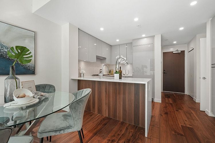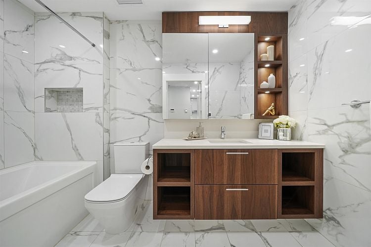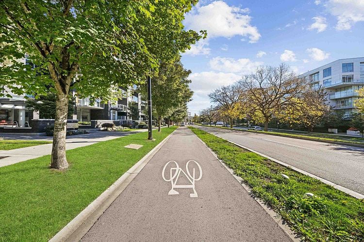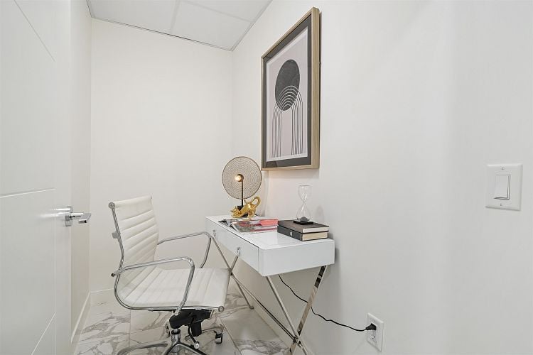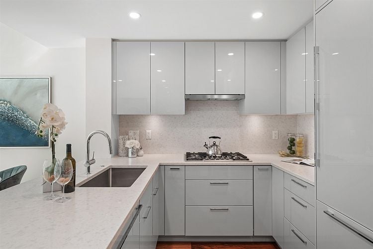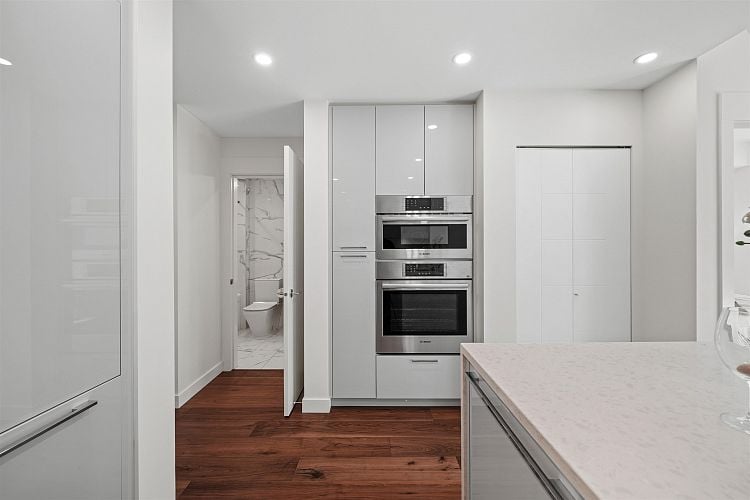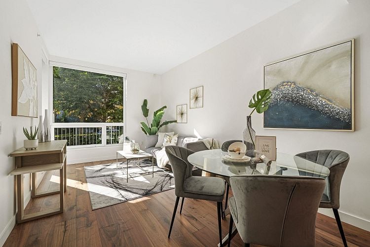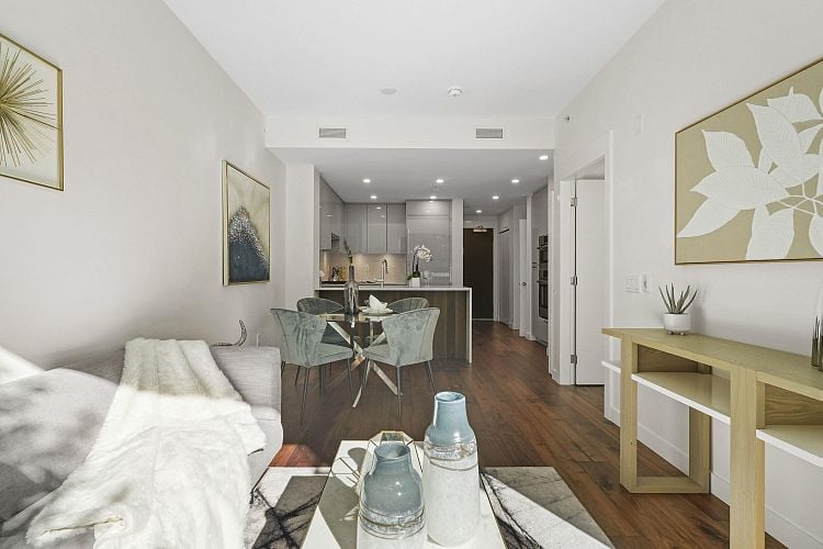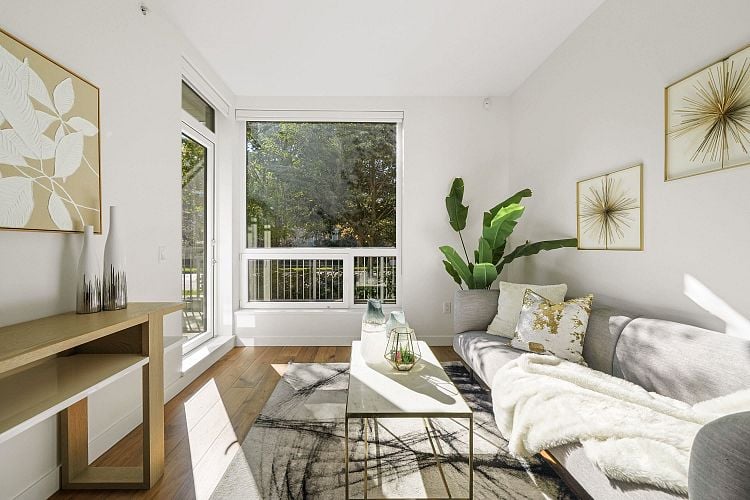 Welcome to this bright ground-level suite with private direct access that provides a townhouse feel. This 1 Bed + Den has a LARGE West-Facing PATIO. Open layout with 9' ceilings, sleek kitchen equipped with full-size integrated Bosch appliances, SS wall-oven, ample cabinet, counter space, premium walnut HW flooring throughout. The bathroom features Nuheat in-floor heating, with porcelain tiles seamlessly wrapping the floors and walls. Boutique CONCRETE building situated along the Cambie Corridor - prime WestSide Location. Enjoy having Queen Elizabeth Park as your backyard with easy access to Canada Line Skytrain Station, Oakridge Mall, Richmond, Airport or DT. Includes 1 PARKING + 1 LOCKER