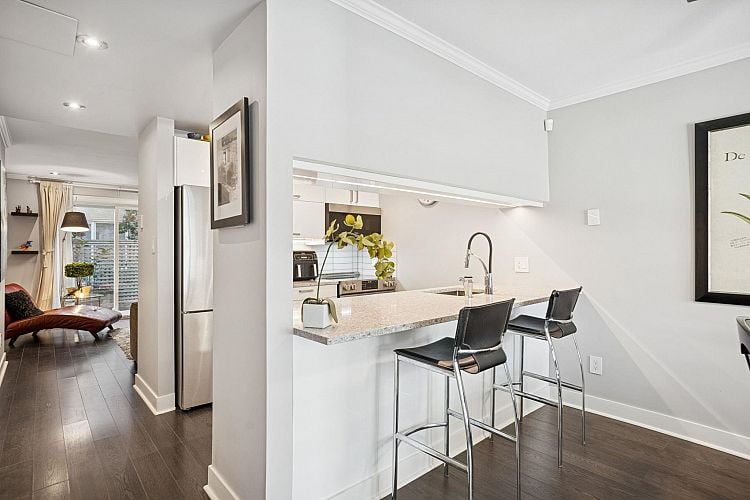 Experience townhouse-style living in this stunning 1 bedroom unit located in a boutique rain-screened low-rise building in the sought-after West End. This corner ground level unit features a spacious north-facing patio at the entrance, along with a south-facing deck accessible from the dining area and bedroom. With a modern kitchen, updated bathroom, and new flooring, this unit exudes style. The generously sized primary bedroom boasts a walk-in closet and cheater ensuite, perfect for a king-size bed. Enjoy the convenience of being mere steps away from Sunset Beach, and all the amenities, shopping, cafes, and restaurants along Davie St. and Denman St. in vibrant Vancouver. Open House: Sat/Sun Oct 18 & 19 2-4 pm.