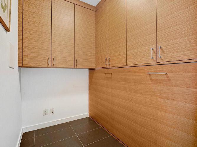 Prime Fairview 1 bed condo with light filled office and bonus storage/flex room with custom cabinetry and built in single murphy bed! Located in the desirable, concrete ‘Spruce’ building just steps to all the conveniences of West Broadway + the new SkyTrain line. With 9’ ceilings, tons of natural light from floor to ceiling corner windows, brand new electric blinds throughout and additional heat pump AC to keep cool in the summer! Great amenities including fitness and rec room w/ pool table. Parking and bike storage too! Move in and enjoy the best of Fairview living in this impeccably maintained home. Easy to show by appt!