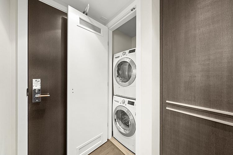 Welcome to Maddox by renowned local developer Cressey. This thoughtfully designed 1-bedroom + den home offers an efficient layout with the signature Cressey Kitchen™, integrated appliances, quartz countertops, built-in bedroom cabinetry, air conditioning, and engineered hardwood floors. Residents enjoy a state-of-the-art fitness centre, steam room, meeting room, and 24-hour concierge. Located steps to Yaletown, the Seawall, and downtown’s best dining and shopping. Includes 1 parking stall and 1 storage locker—an ideal home for professionals or investors seeking quality and convenience in downtown Vancouver. Please schedule your viewing.