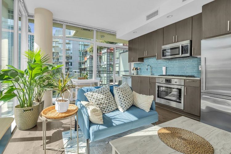 Welcome to Olympic Village living at its best. This bright fifth-floor corner home is filled with natural light from two walls of glass, making it a dream for plant lovers and anyone who enjoys open, airy spaces. With air conditioning, a spacious layout, and a versatile den, it’s ready for you to make it your own. Built just 10 years ago, The One is pet friendly and offers fantastic amenities including a pool, hot tub, and gym. Step outside and enjoy everything Olympic Village is known for, from the seawall to community centres, cafés, restaurants, and shopping, all within walking distance. Perfect for a first-time buyer, a downsizer seeking comfort and convenience, or anyone wanting to embrace one of Vancouver’s most vibrant neighbourhoods, this home is an incredible opportunity.