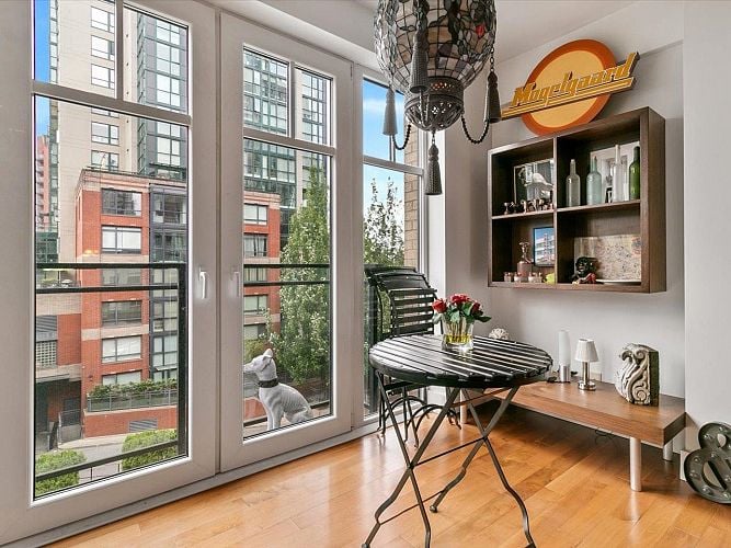 The combination of LOCATION & DESIGNS by ALDA PEREIRA equals to the fabulous boutique building ALDA! Thoughtfully considered with a timeless spec, this one bed + flex loft has it all. 8’9” ceilings, exposed beams, H/W flooring, electric f/p. & AIR CONDITIONING. OPEN FLOORPLAN- Linear kitchen w/ custom island that can also be used as a dining area. SPACIOUS LIVING room with an area that can extend your living space or use it as an office or den. Facing Hamilton, this suite has TILT & TURN WINDOW/DOORS to bring in the OUTDOORS & a PARISIAN like JULIET BALCONY! This home is a great INVESTMENT OR a PERFECT HOME! Situated in one of the best neighbourhood’s Yaletown where you are steps to the seawall, best restaurants, shopping and Transit. Pets OK. Offers as they come.