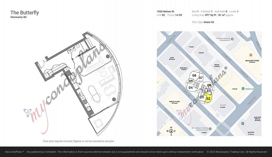Welcome to The Butterfly, a stunning design by Revery Architecture. This southeast-facing, 1-bedrm, 1-bathrm home offers 877 sq. ft. of spacious living with floor-to-ceiling windows that showcase breathtaking city views and fill the space with natural light. The interior includes high-end Miele appliances, Italian cabinetry, and a fully automated smart home system. It also comes with two side-by-side parking spots and one locker. The Butterfly offers exceptional amenities, including a 50-meter glass-roofed pool, a fully equipped fitness center, a yoga room and more. The building also has a 24-hour concierge service and digital video surveillance for security. Located in Vancouver’s West End, this home is steps from English Bay, Stanley Park, and luxury shopping on Alberni Street. Must See!