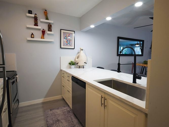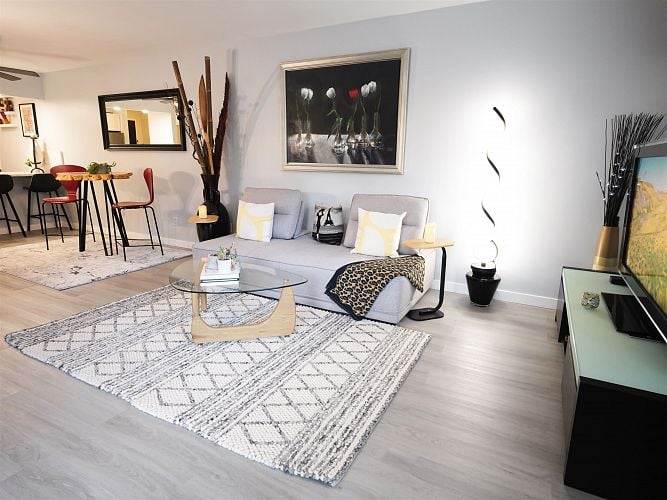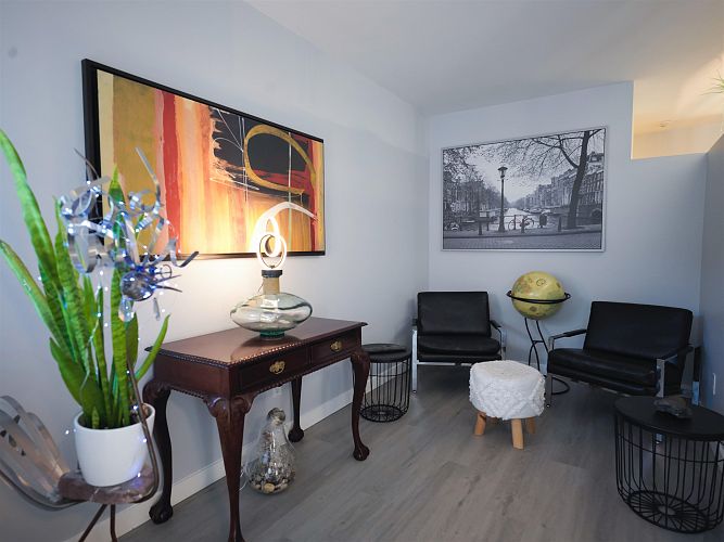 Spectacular False Creek waterfront suite perfectly positioned on the Sea Wall by the Lagoons and Granville Island. Recently renovated to designer standards, this open-plan 1-bedroom plus den (easily a 2nd bedroom) offers nearly 900 sq.ft. of airy sophistication and natural light. Spacious rooms include a walk-in closet and a spa-style bath with a deep soaker tub, a heated towel rack, and radiant flooring. Step outside to walk or bike the Sea Wall, sail, or enjoy fresh catch at the Fishermen’s Wharf. A rare opportunity in a world-class location—tranquil yet steps to buses and city life. Vancouver City land lease to Dec. 2046, extendable to 2066. Pure peace in a magnificent setting. Viewings by appointment; also open Sunday 12:00 PM to 2:00 PM.