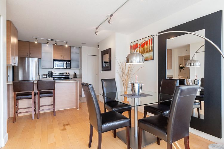 *Yaletown Park 1** - This highly sought-after "10" plan is rarely available and features bright southern exposure, offering exceptional views of Yaletown and False Creek. Upon en*try, one is greeted by floor-to-ceiling windows, an efficient layout, a den or flex area, and a covered balcony.Upgrades include engineered wood flooring, a Bosch washer and dryer, a GE dishwasher, and track lighting. The kitchen is thoughtfully designed, featuring a spacious island, stone countertops, and stainless steel appliances. This residence presents an opportunity as a turnkey investment, suitable for rental use.The building provides a range of amenities, including 24-hour concierge service, a gym, a bicycle room, a garden, and a guest suite. CLOSE to Seawall, shopping boutiques, and the Canada Line.