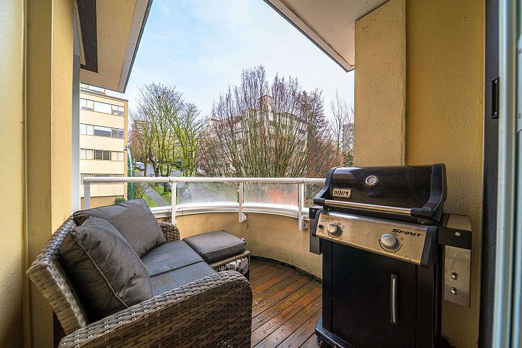 Suite 401 at Julia Court is a West End gem filled w/ character, light & calm. This bright corner home features HW floors throughout & is wrapped in windows overlooking a tranquil tree canopy. Whisper-quiet w/ a thoughtful & functional layout offering separate living & dining rms. The updated open kitchen incl S/S appliances, induction stove & a lrg kitchen counter—perfect for cooking & gathering. The spa-like bath fts heated flrs & a deep soaker tub. Julia Court is a boutique, architecturally renowned concrete bldg known for its welcoming community & open-air corridors. Lovingly maintained w/ major updates incl new roof, elevator, rainscreening, piping, windows & parking membrane. Pet-friendly w/ sauna, plus 1 prkng & storage incl. Steps from Sunset Beach, the seawall & Davie & Denman Str.