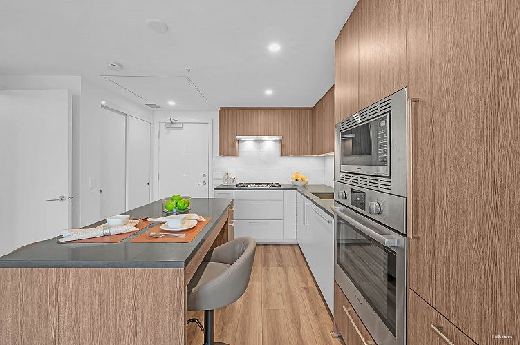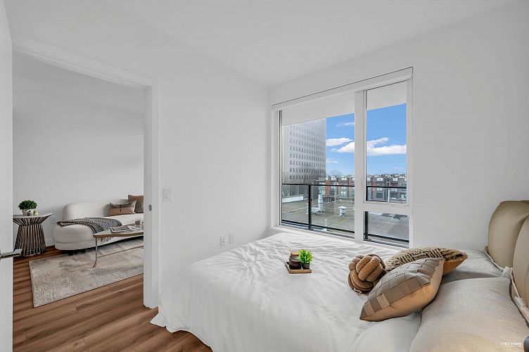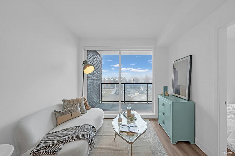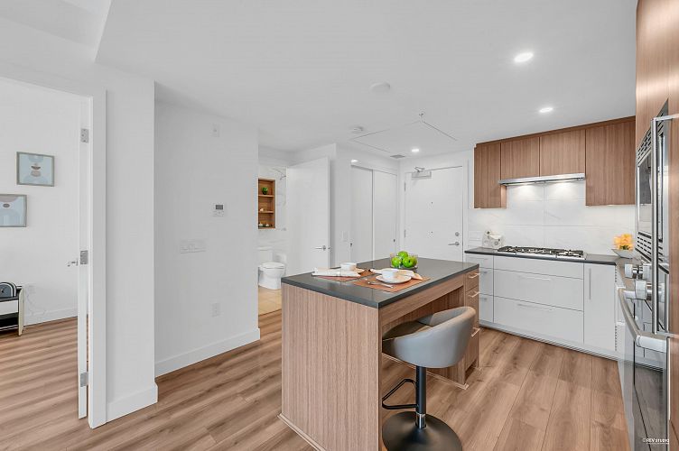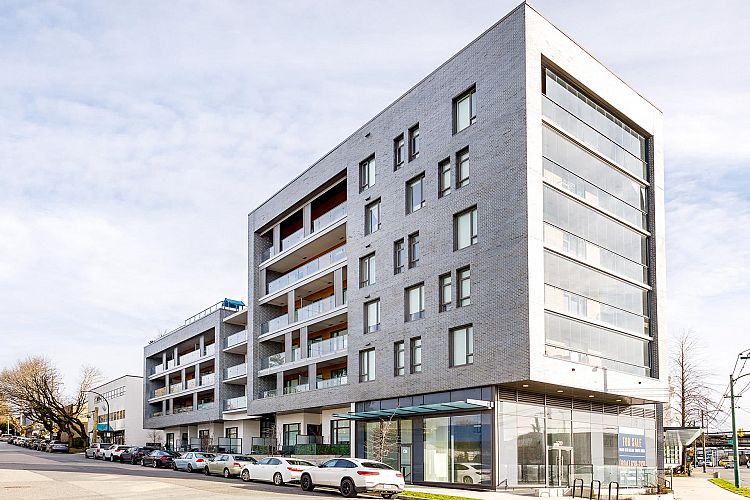 CALLING ALL INVESTORS AND FIRST TIME HOME BUYERS! This 449 SF 1 Bed 1 Bath home is on the QUIET side with UNOBSTRUCTED City View. Vancouver Westside's new luxury CONCRETE & AIR-CONDITIONED condo in the heart of Marpole! Functional floorplan with no wasted space, open kitchen features BOSCH stainless steel appliances: gas range, FULL-SIZE integrated fridge, plenty of counter space & cabinets for storage. Floor-to-ceiling windows in the living room provide tons of natural light & access to a 102 SF covered balcony! Bedroom can fit a King Size bed with a walk-through closet to a cheater ensuite wrapped in beautiful bath tiles & cabinetry. 1 PARKING & LOCKER. Rentals & Pets Allowed! Ezymart downstairs, 5 minutes drive to YVR, Marine Drive Skytrain, T&T Supermarket, Cineplex, retail & dining!