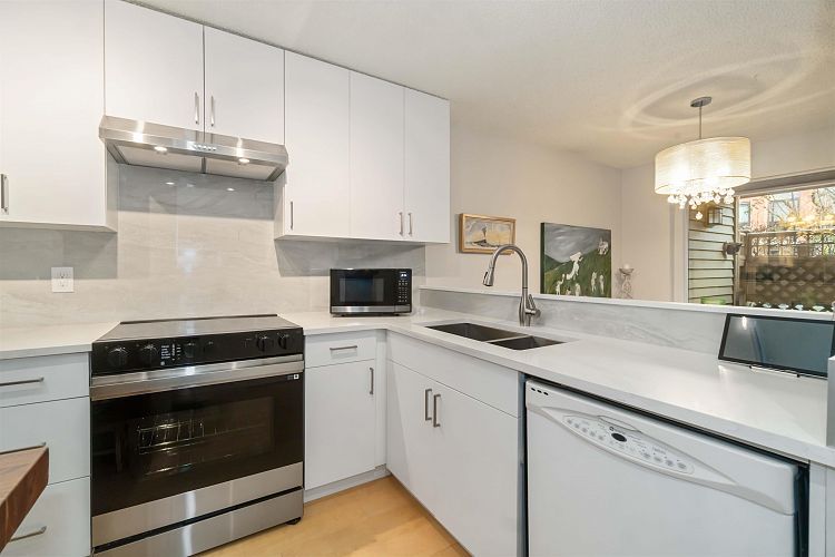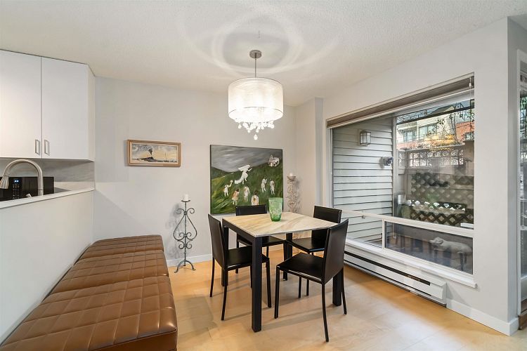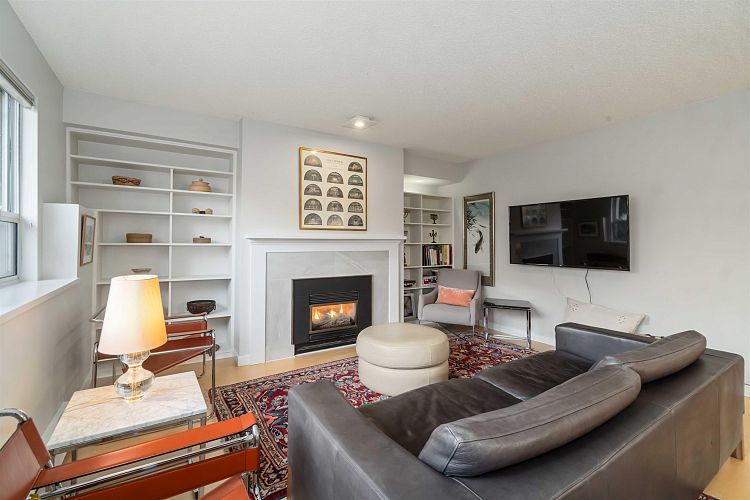 Townhouse-style 1 bdrm condo offers exceptional privacy, a private courtyard & the direct patio access makes it feel like a true townhome. Move-in ready w/ new engineered HW floors, new quartz countertops, new kitchen cabinets, new fridge & stove + freshly painted! Well-planned living space includes large windows, fireplace, pantry, spacious bdrm that accommodates a king-size bed, updated semi-ensuite bathrm + a bright open layout ideal for both quiet evenings & entertaining. Secure parking + storage locker add to everyday convenience. Enjoy living in a well managed complex located on a quiet street minutes from Granville Island, False Creek, South Granville shopping, Vancouver General Hospital, cafes and downtown. Open house Sat Feb 14 1-3PM