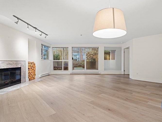 Experience a magical waterfront community lifestyle where everyday feels like vacation in paradise. Welcome to this bright and spacious 977sqft one-bedroom & open-den sanctuary at ”The Lagoons” - a highly sought-after waterfront complex in False Creek. This home features stunning eng. h/w floors throughout, wood-burning fireplace, high-quality appliances (Bosch stove & dishwasher), and a huge, quiet, south-west-facing patio overlooking sparkling water. Bring your patio-decorating ideas to create your own private outdoor haven. Steps to the False Creek seawall and to Granville Island Market shops, restaurants, and water taxies. Incl. 1 pkg, 1 locker. Pets allowed with some restrictions. Prepaid lease until 2066. NOTE: Fixed-term tenant in place until Feb 28, 2027. Showings by appointment.