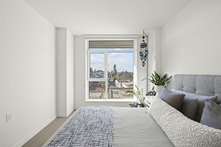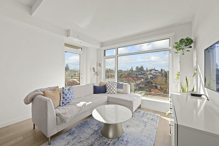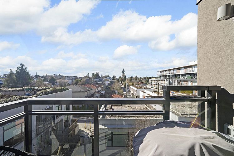 Modern and spacious 1 bedroom home in the heart of the desirable Cambie Corridor. This thoughtfully designed 721 sqft residence features a bright open layout, air conditioning, and quality finishes throughout. The contemporary kitchen is equipped with sleek cabinetry, quartz countertops, and stainless steel appliances—perfect for everyday living or entertaining. Enjoy a private balcony and a comfortable living space with room for full-sized furniture. Located in a well-built concrete building just steps to Queen Elizabeth Park, Oakridge Centre, SkyTrain, shops, and dining, offering the ultimate in West Side convenience. Includes 1 parking stall. A fantastic opportunity for first-time buyers, downsizers, or investors. OPEN HOUSE MAR 7 2-4PM