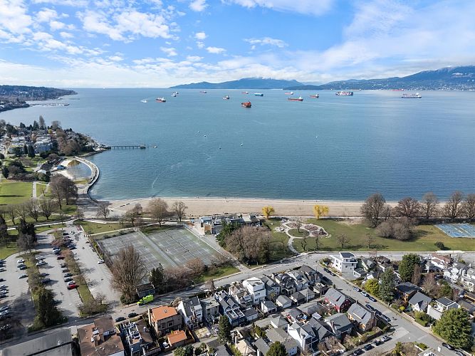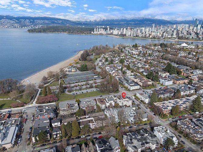 Wake up to the sound of the ocean and embrace the Kits lifestyle just steps from Kitsilano Beach. This beautifully renovated 1 bed, 1 bath ground floor home offers a rare 164 sq ft private patio, perfect for morning coffee, summer evenings, and gathering with friends. Inside, enjoy a warm, inviting space with fireplace and serene park and beach views. Live where every day feels like a getaway, with Kits Pool, tennis courts, off-leash dog park, vibrant cafés & restaurants just outside your door. Perfect for first-time buyers or investors seeking something truly special. Open House Sat. 3/21 11AM-1PM, Sun. 3/22 2PM-4PM