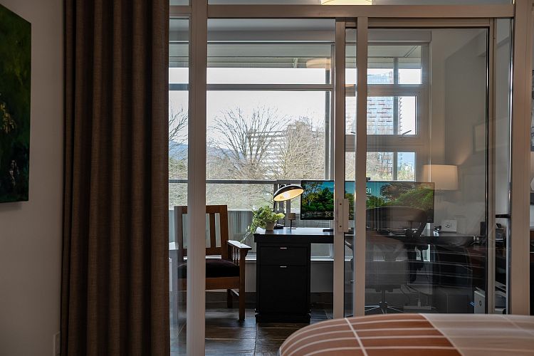 Boutique concrete building that embraces the quintessential Vancouver experience! Walk to Kits Beach for tennis,volleyball or an ocean swim. Stroll to Granville Isl., W.4th or downtown this location offers an unparalleled blend of recreation, culture & convenience! Thoughtfully designed 1 bdrm+solarium+den/office, provides you w/ a highly adaptable layout, so versatile! Sophisticated interior design delivers custom built-ins, upscale finish, & inspiring rooms. Functional integrated storage throughout eases daily living! The living space extends onto an oversized covered deck looking out to the trees of Seaforth Park & The NS mountains. Living at First on First offers more than just a place to call home, it offers a vibrant neighbourhood & a lifestyle to enjoy in all four seasons!