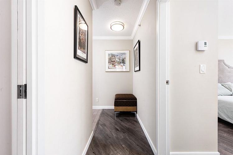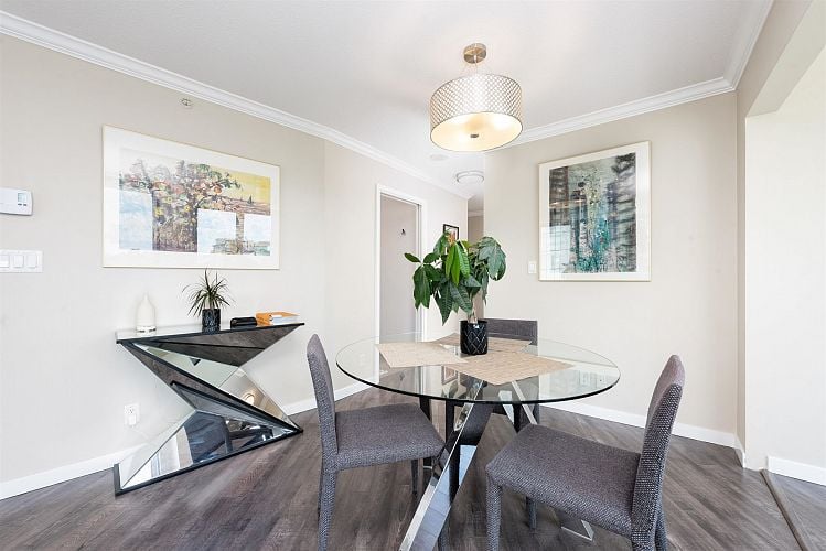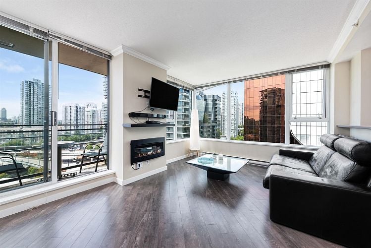 Welcome to Coopers Lookout, in one of Vancouver's most coveted waterfront neighbourhoods. 1-bedroom + den corner home offers a bright, open layout framed by expansive windows and refined Euro-style finishes, including granite countertops, stainless steel appliances, and laminate flooring throughout. Perfect for young professionals or savvy investors, this home delivers exceptional livability and strong rental appeal in a high-demand, low-maintenance building. Residents enjoy exclusive access to the Esprit City Club's resort-style amenities, featuring a fully equipped fitness centre, yoga and Pilates studio. Just steps from the seawall, parks, and vibrant urban conveniences, this prime location encourages an active lifestyle with the best of downtown living at your doorstep.