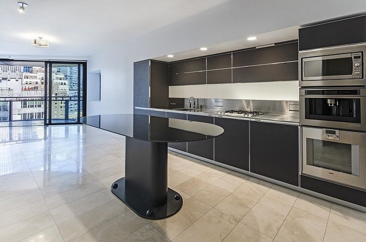 Step into iconic luxury at Jameson House, a signature creation by Foster + Partners and built to exacting standards by BOSA. This oversized 1-bedroom isn’t just a home - it’s a statement. Thoughtfully designed with a sleek Dada Cucina kitchen, premium Gaggenau & Bosch appliances, and a Sub-Zero fridge, every detail is dialed in. Soaring 9’ ceilings, radiant in-floor heating and cooling, and rich travertine stone flooring create a refined, gallery-like feel. This is sustainable design at its finest, blending cutting-edge technology with timeless materials.Enjoy white-glove living with 24-hour concierge and automated valet parking. Take in stunning views of the water, Lions Gate Bridge, and North Shore mountains—all just steps from the seawall.