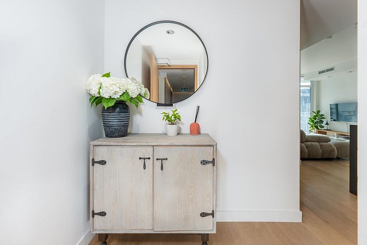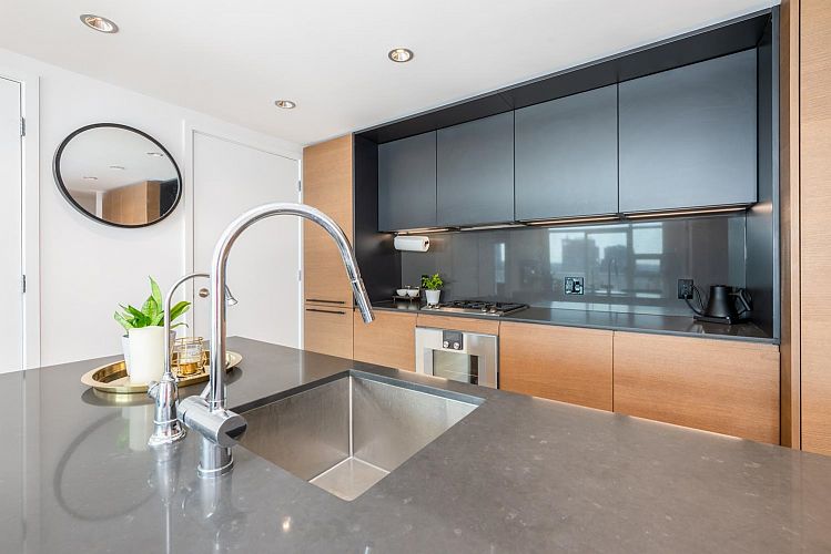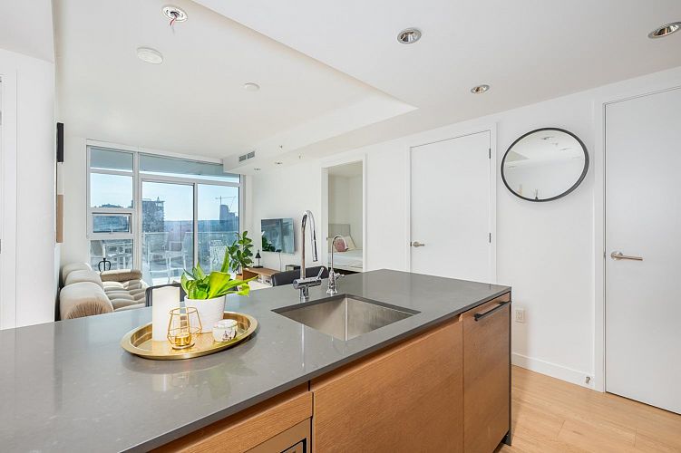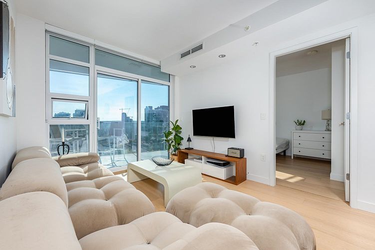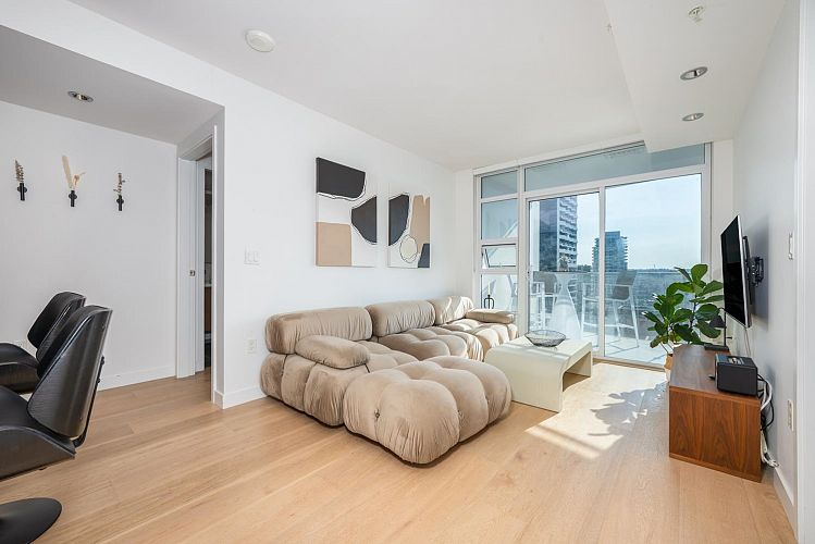 Welcome to One Burrard Place! This exquisite 2-bedroom, 2-bathroom plus den residence features an open-concept kitchen with Gaggenau appliances and Italian cabinetry, 2 bathrooms with white marble walls, wide-plank hardwood floors, a smart home system, a built-in safe, and great views of the city, Burrard Bridge, and partial ocean. You will also enjoy a private balcony of over 100 sq ft. 30,000 sq ft of world-class amenities includes: 24 hrs concierge, State-of-the-art fitness facility, indoor & outdoor party rooms, study & music rooms, yoga room, guest room, full length pool, steam/sauna, hot tub, massage rooms & more. 1 parking & 1 bike locker. Perfect location close to shopping, transportation, parks.