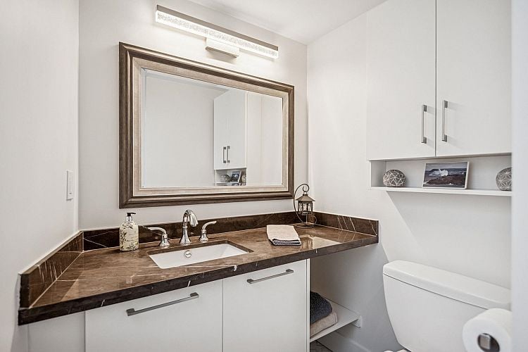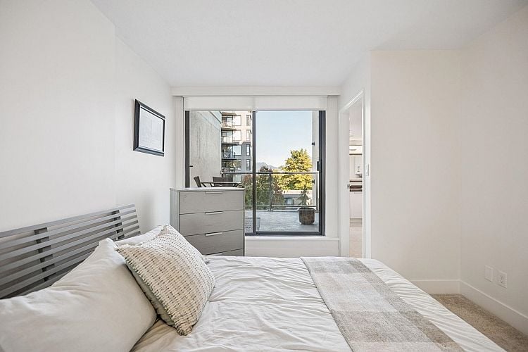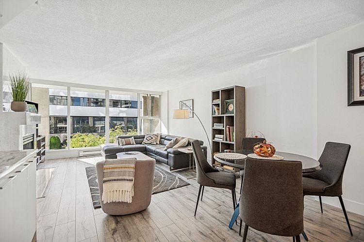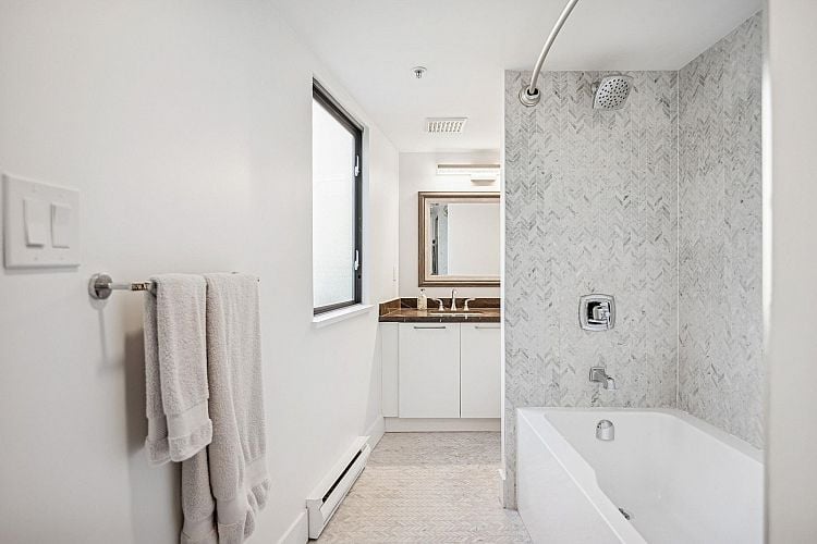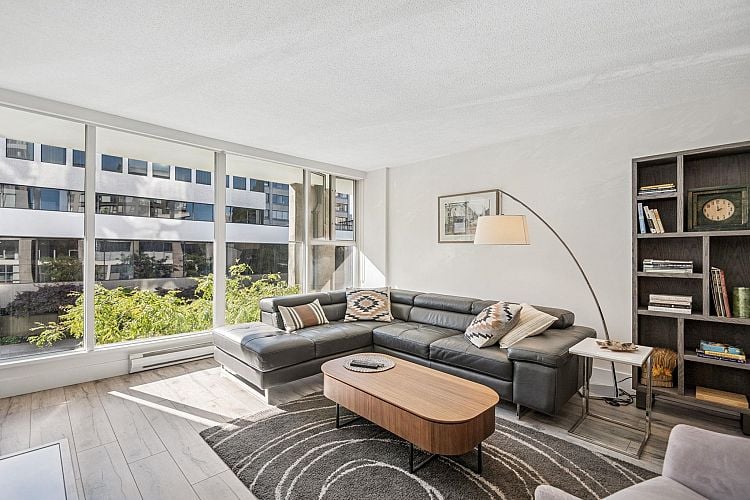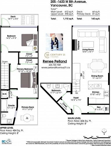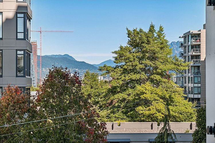 Completely renovated TWO LEVEL city condo with Mountain & City views. This 2 bedroom & flex, 2 full bathrm home features new kitchen with granite counters, fresh paint, vinyl flooring, roller shades, built-in wine fridge, custom tiling. 2 spacious bedrooms each with their own separate large balconies on 2 sides, north side has Mountain and City views, showcased by serene treed landscaping, south side has big sunny balcony off 2nd bedroom. Located on a quiet tree lined street on the top level with no one above. Steps to Broadway & Kits shopping, skytrain, entertainment. Building features a gym, sauna, bike rm, major renos done: exterior (2023), roof (2019), pipes (2012), hallways (2018). EV Charging. 2 PARKING, 1 storage locker. Pets & rentals allowed. OPEN HOUSE SAT/SUN OCT 11/12, 2-4 PM.