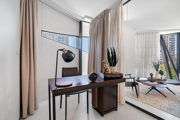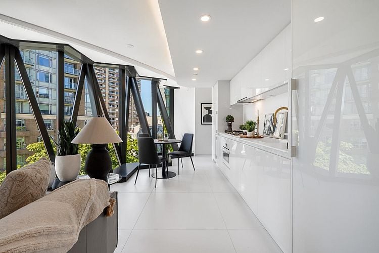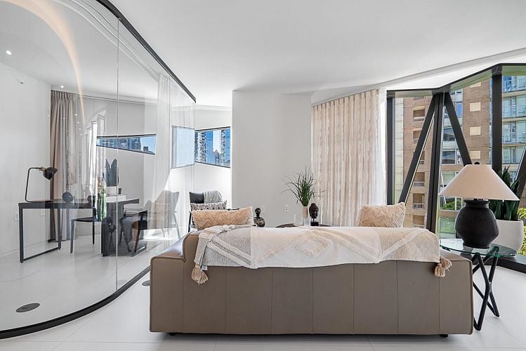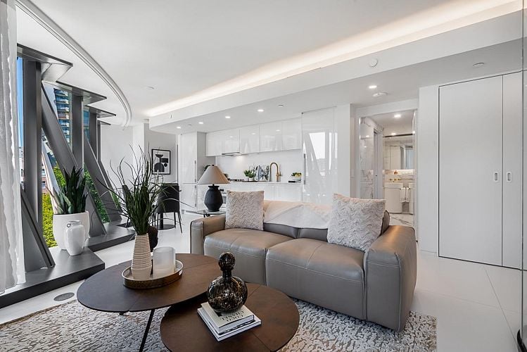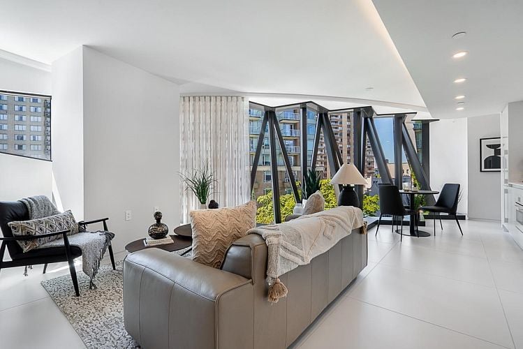Welcome to The Butterfly, a striking architectural landmark by Bing Thom Architects located the vibrant West End. This thoughtfully designed one-bedroom+ den (can be second bedroom) home offers over 1000 sqft of airy, light-filled living space w/ floor-to-ceiling curved glass walls. Sleek Italian kitchen features Miele appliances and a sculptural island, while the spa-inspired bathroom & versatile den add function and comfort. Residents enjoy access to world-class amenities incl. a 50-metre lap pool, sauna, gym, resident lounge, 24-hour concierge, & BMW car share. With secure parking, storage, smart home systems, & a prime location just steps from English Bay, Robson Street, and the city’s best dining - this home offers a rare blend of elegance, innovation & lifestyle.