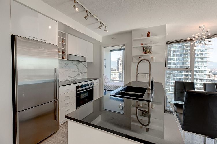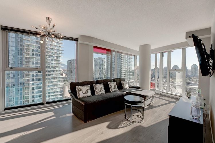 Experience bright, contemporary living in this stunning CORNER suite at Concord Pacific’s Spectrum! Soak in breathtaking 180° views of the North Shore Mountains, False Creek, and the city skyline from every window. This open-concept 2-bedroom + den + flex home offers a modern kitchen with stainless steel appliances, granite countertops, and sleek flooring throughout. Freshly painted and move-in ready, this well-kept home includes 1 parking stall and access to premium amenities, pool, hot tub, gym, lounge, and 24-hour concierge. Perfectly located just steps to SkyTrain, Costco, Rogers Arena, and the seawall, urban living at its finest!