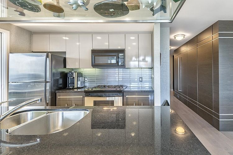 Experience sweeping panoramic views of False Creek and David Lam Park from this beautifully renovated waterfront home. This modern corner unit offers floor-to-ceiling window, an open-concept layout with a redesigned kitchen, granite breakfast bar, gas range stove, hardwood flooring, custom built-in office, elegant wood millwork, remote-control motorized blinds and patio with protected water views. Enjoy world-class resort style amenities at Club Viva - including a 60' pool, hot tub, sauna, gym, squash court, theatre, party room, library, guest suite, and 24-hour concierge. Two parking stalls & in-suite storage included. Live the ultimate waterfront lifestyle in the heart of Yaletown. Available, easy to show by appointment.