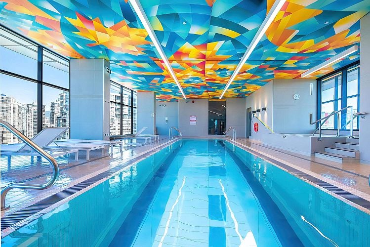 Sophisticated 2-Bedroom + Flex Corner Residence at The Arc. his beautifully crafted 2-bedroom + flex/den, 2-bath corner home showcases panoramic views of False Creek and the Vancouver skyline. The floor plan is intelligently designed with 8’4” ceilings, floor-to-ceiling windows, and separated bedrooms for maximum privacy. The interiors feature air conditioning, laminate flooring throughout, and roller shades for comfort and style. The chef-inspired kitchen is appointed with premium Miele appliances, while the primary suite offers a spa-like ensuite and generous closet space. Residents of The Arc enjoy access to the exclusive Sky Club, complete with the iconic 20th-floor glass-bottom pool. Steps to the Seawall, fine dining, and downtown conveniences