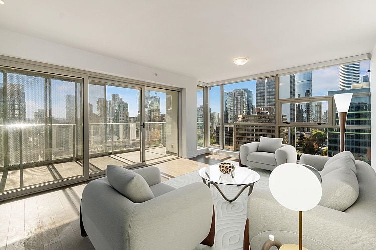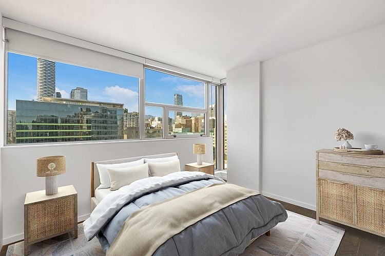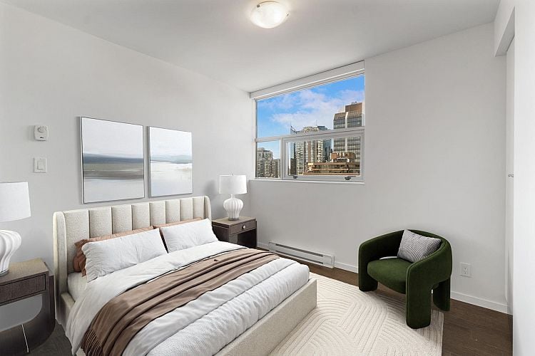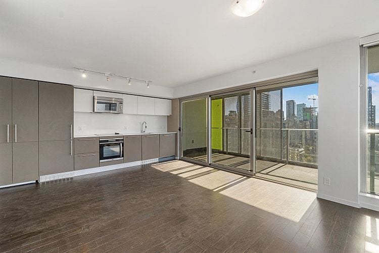 Bright and modern 2 Bedroom + Den corner home with floor-to-ceiling windows showcasing sweeping city views and plenty of natural light. The open-concept layout features a sleek kitchen, integrated appliances, and smart storage. A versatile den makes the perfect home office, while the oversized balcony extends your living space outdoors. Residents enjoy premium amenities including a fully equipped gym, yoga/rec rooms, and lounge areas. Located in the heart of Downtown Vancouver, you’re just steps to Yaletown, Robson shopping, Granville dining and entertainment, SkyTrain, the Seawall, and major sports venues. Pet and rental friendly—an ideal choice for homeowners and investors alike! Open House Saturday 1 to 3 PM.