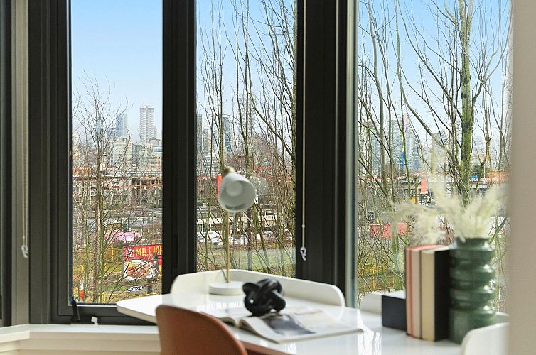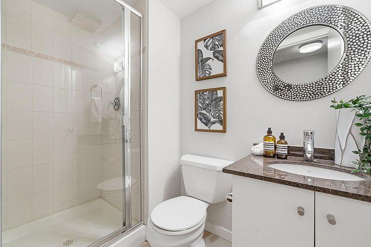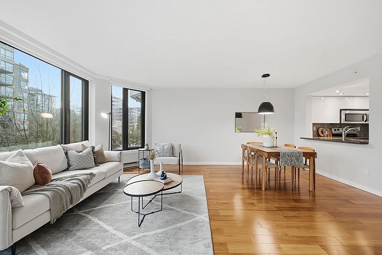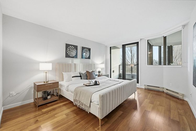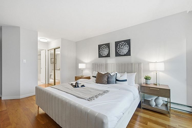 Welcome to Meridian Cove - premier Westside living. This well-maintained concrete building was updated in 2023 with full rain-screen and triple-pane windows. Inside, enjoy 1,040 sqft of refined living with 2 beds, 2 baths, and a den. The expansive primary bedroom comfortably fits a king-size bed and features a walk-through closet to a large four-piece ensuite. The spacious open-concept living and dining area offers the perfect setting for entertaining while taking in stunning views of downtown and the Granville Bridge. Resort-style amenities include an indoor pool, hot tub, sauna, gym, garden, caretaker, and more. Steps from West 4th, Granville Island, South Granville, and the Broadway Line Extension (600m). 1 parking and 1 storage unit.