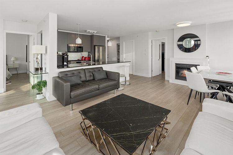 NOVA by BOSA in heart of Yaletown. This stunning corner 2 Bed + 2 Bath + Den + Flex offers over 1,058 SF of luxurious urban living. An entertainer’s dream with an open kitchen, 10’ island, gas cooktop & stainless appliances. Bright, spacious living & dining fit house-size furniture and open to a covered balcony with sunny water views for year-round use. Bedrooms are separated for privacy, with a spa-like ensuite, inspiring den & large flex/pantry. Enjoy great amenities—gym, yoga space, hot tub, steam room, lounge, guest suite & courtyard. Prime Yaletown location close to Robson, Granville, Costco, T&T, Seawall, Stadium & Arena. Includes 1 parking & 1 locker.