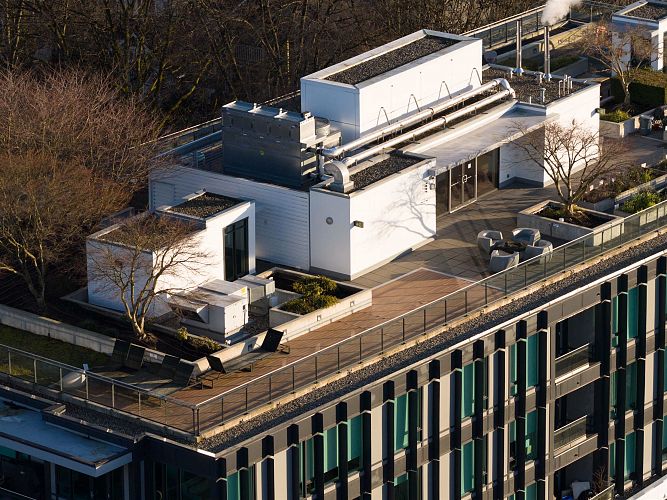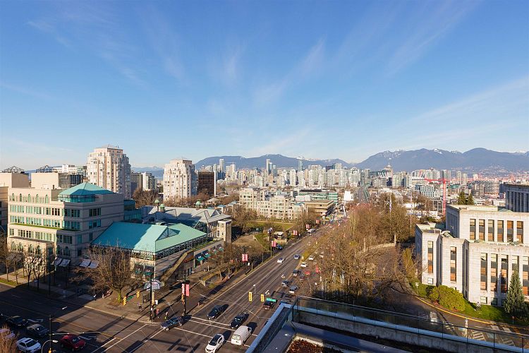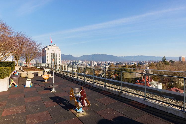 Quietly positioned on the peaceful side of the building, this 2-bed/2-bath home is designed for real life. A highly functional floor plan places bedrooms on opposite sides for privacy, with 2 dedicated areas ideal for home offices. Open-concept living & dining flow seamlessly into a generous kitchen featuring integrated appliances, quartz counters & backsplash, & ample storage. An expansive 480sqft terrace extends the living space outdoors—perfect for entertaining, relaxing, or everyday enjoyment. The primary suite offers custom built-in closets & a spa-inspired ensuite with double sinks, soaker tub, & separate shower. Complete with air conditioning, concrete construction, parking, and storage, just steps to transit, schools, & the shops and cafés of Mount Pleasant, Fairview, & Cambie.