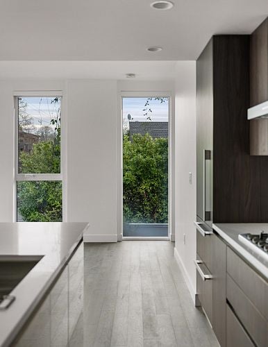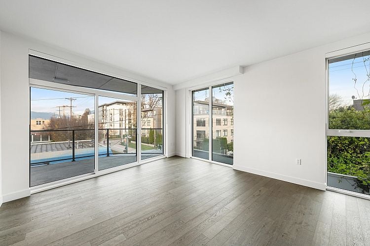 This luxury Kitsilano residence offers quiet concrete construction, North Shore mountain views, and a relaxed beach-side lifestyle. Backing directly onto the Arbutus Greenway and steps to parks, West 4th, cafés, shopping, transit, and the future Broadway SkyTrain. Interiors by award-winning designer Christina Oberti feature 9' ceilings, engineered hardwood, and oversized windows. The contemporary kitchen includes Scavolini cabinetry, quartz counters, marble backsplash, LED lighting, and full Miele appliances. Spa-inspired bathrooms offer Nuheat flooring, Italian glass showers, and Kohler fixtures. Secure parking, storage, bike rooms, monitored safety systems, and a full 2-5-10 warranty complete this exceptional home.