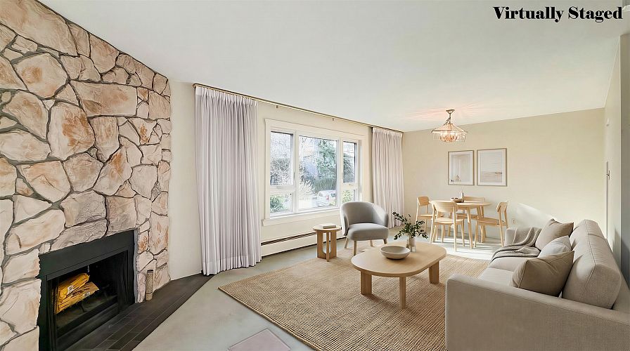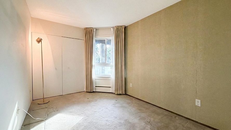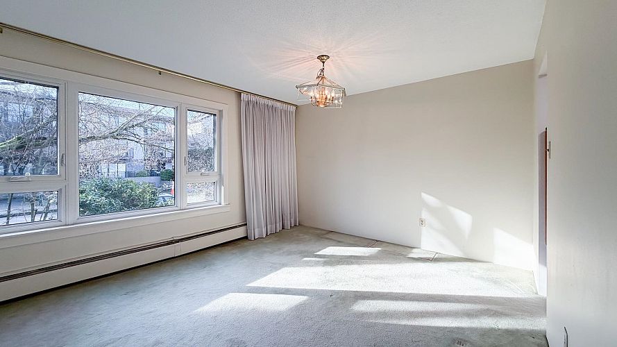 North of 4th Avenue 2-bed, 1 bath corner suite. Spacious rooms, ample closets, in-suite laundry and covered balcony. Amazing location close to the beach, shops and restaurants. Well-cared for building with proactive strata is rain-screened, newer roof membrane, elevator upgraded. 1 underground parking, storage locker, u/g visitor parking, secure bike lock up. Up to 2 dogs or cats - max weight of any pet 15kg. Some photos are virtually staged. OPEN: Sat March 7, 2-4PM