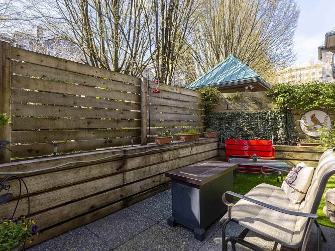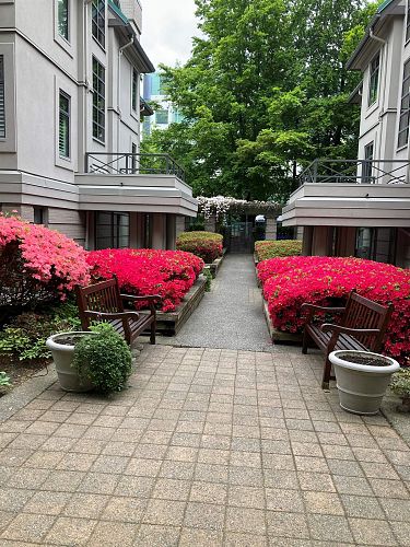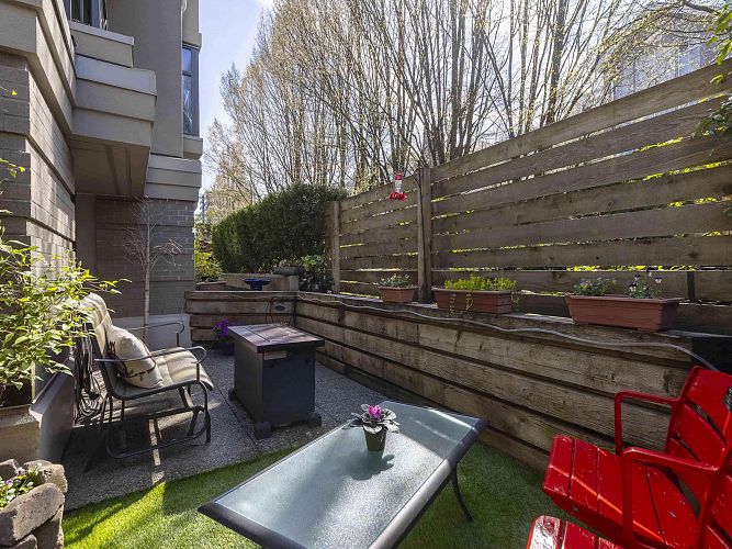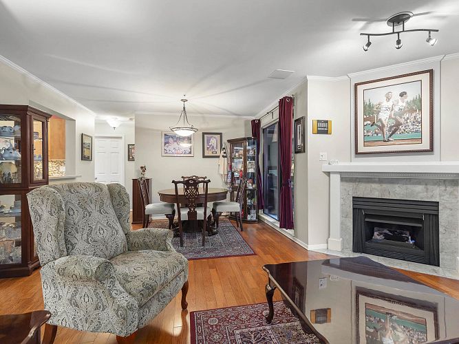 Discover this 2-bed garden-level corner unit in Connaught Gardens, located on the QUIET side of the building. Enjoy easy access to a 200 sf plus patio, both sunny and partially covered, perfect for relaxation. Large windows offer both energy efficiency and views of the patio and the courtyard garden. The interior features elegant wood floors, ample natural light, and a gas fireplace, enhancing the cozy atmosphere. Well-laid-out kitchen opening to the dining area, but also a room on its own. Complete rainscreen system in 2015, including windows, balonies and roof. Centrally located, just blocks away from vibrant Cambie Village, the Canada Line, VGH and City Square Mall, providing excellent amenities and transit access. Pets allowed, no short-term rentals. Call for your private viewing.