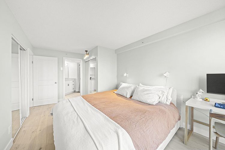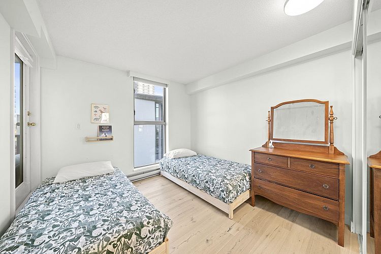 Experience Fairview living in this bright, corner 2 bed, 2 bath home at Fircrest Gardens. Complemented w/ engineered hardwood flooring throughout, updated bathrooms, a spacious living w/ gas fireplace, & a large dining area for entertaining. The generous 18 feet primary bedroom easily fits a king-sized bed. The second bedroom is well separated for privacy, making it perfect for kids, guests, a roommate, or a dedicated home office w/ its own full bath. All of this in a prime Westside location just minutes to Granville, Broadway, Kits Beach, cafes, restaurants. Building features a gym, sauna, bike room, major renos done: exterior (2023), fob system (2026), hallways (2018), roof (2019), pipes (2012). 1 regular & 1 EV parking stall. 1 locker. OPEN HOUSE: SAT & SUN, APR 18-19, 2-4 PM