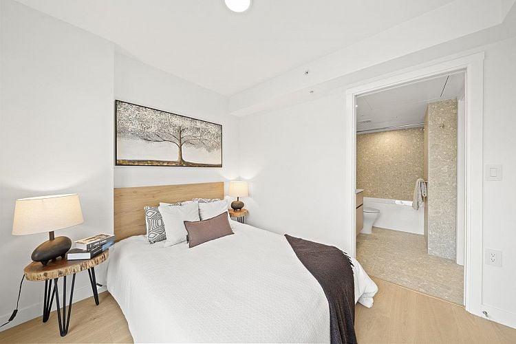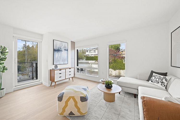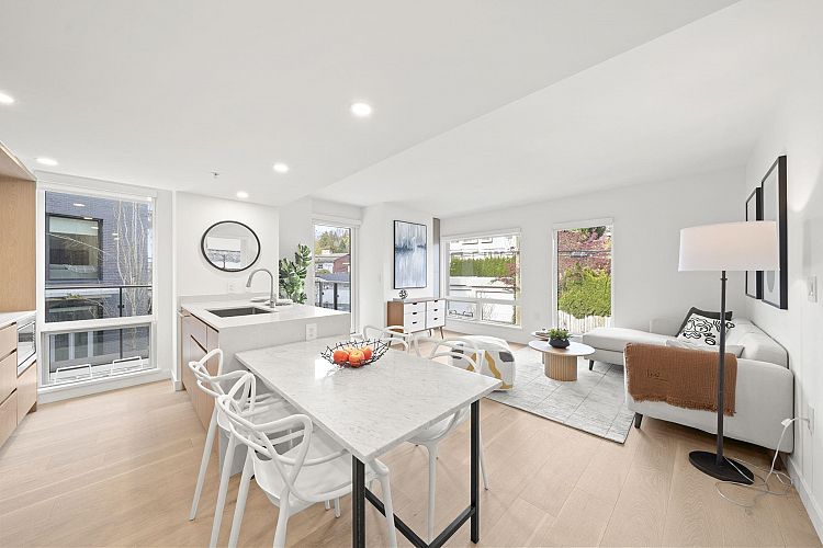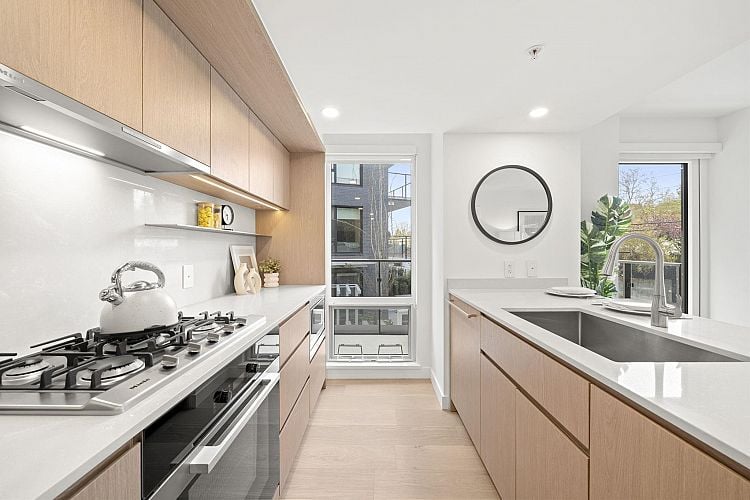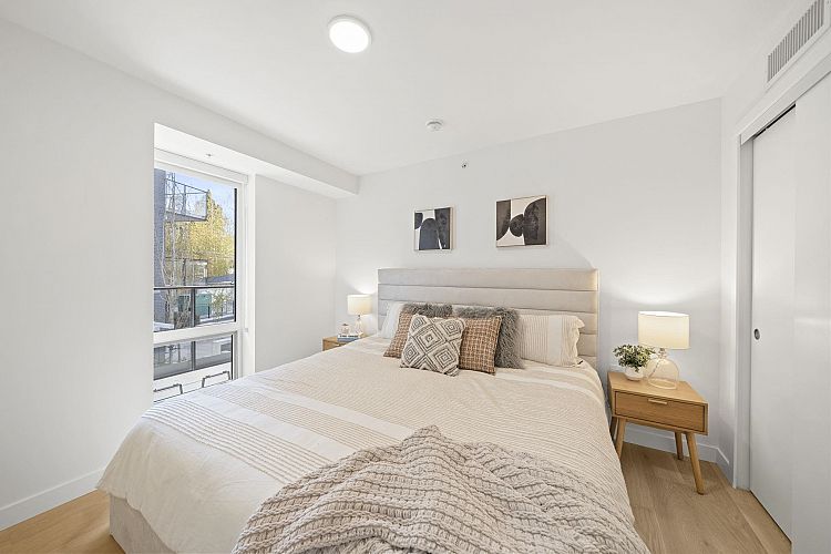 A truly unique brand new Corner Large and Spacious 2 Bedroom/3 Bath/2 balconies + Flex/Work Space corner home that spreads over two levels offers modern lifestyle and perfect for WFH! 1) Both bedrooms are on completely opposite corners. 2) Both with ensuite functions for privacy and convenience! 3) Walk out to your back yard, perfect for dog or bicycle lovers. Lina at QE Park is the last brand new, move-in ready LEED GOLD CERTIFIED concrete building located in Vancouver's popular Cambie Corridor. Air conditioning for year-round comfort. This unit is NOT facing Cambie. 2 Parkings included.