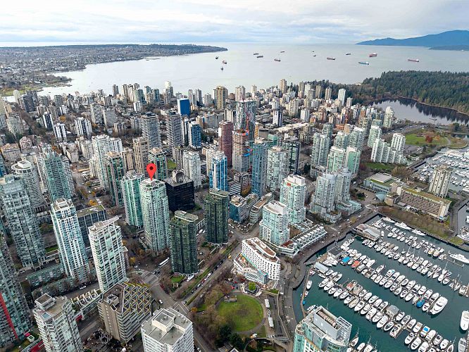 Experience elevated urban living at The Classico in Coal Harbour. This elegant 1,074 sqft corner suite features 2 bedrms, 2 bathrms, a den/office & a separate solarium ideal as a second workspace or junior bedroom. Expansive Floor-to-ceiling windows fill the home with natural light. The efficient layout offers spacious living/dining areas, an upgraded kitchen, new washer/dryer, and a generous primary bedroom with walk-in closet & luxurious ensuite. Residents enjoy premium amenities including an indoor pool, hot tub, sauna, fitness centre, games room and guest suite. Perfectly located in Coal Harbour, steps from the Seawall, Stanley Park, SkyTrain, world-class dining, shopping, and everyday conveniences. 1 parking stall & 1 storage locker included. Call your agent for book a private showing
