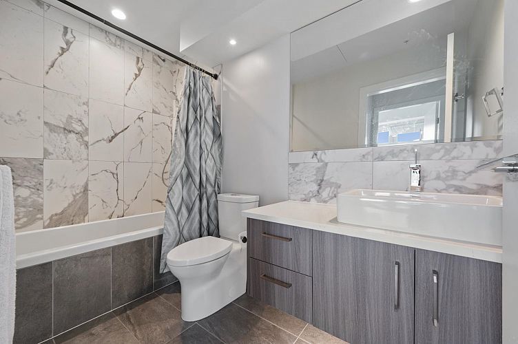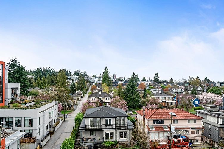 Quiet side of the building! This spacious 3 bed, 2 bath split-level home in Cambie feels more like a house than a condo. Featuring 9’ ceilings, hardwood floors, A/C & floor-to-ceiling windows, it's flooded with natural light. Gourmet Miele kitchen opens to a large wrap-around balcony, perfect for entertaining. Upstairs, 2 beds (incl. primary) access a 2nd private balcony w/ stunning city & mtn views. Thoughtful layout offers separated bedrooms & a flex/den for added storage or office. Solid concrete construction, 2 side-by-side parking, locker, plus building amenities: rooftop deck, BBQ area, lounge & playground. Steps to Canada Line, QE Park, Hillcrest & Cambie Village. A rare find offering comfort, style & unbeatable location!