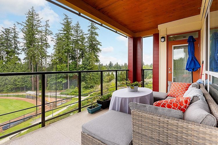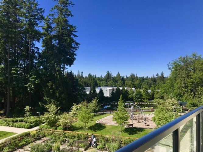 Virtuoso by Adera, multi-time Georgie awards winner. This suite has a spectacular floor plan featuring a Southeast corner view with generous sunlights. The unit has three spacious bedrooms plus a den with window that can be easily converted into a 4th bedroom. Enjoy beautiful view of trees, grass, play ground, and colourful flowers. The covered deck is the perfect space for a relaxing coffee break or a reading area while surrounded by natural beauty. Open kitchen with extended counter top can be a breakfast bar. Wake up every morning surrounded by garden and fresh air. One parking space and one storage locker. 5 minutes walk to U-hill secondary, save-on-foods, bus stops and restaurants. A must see.