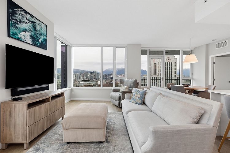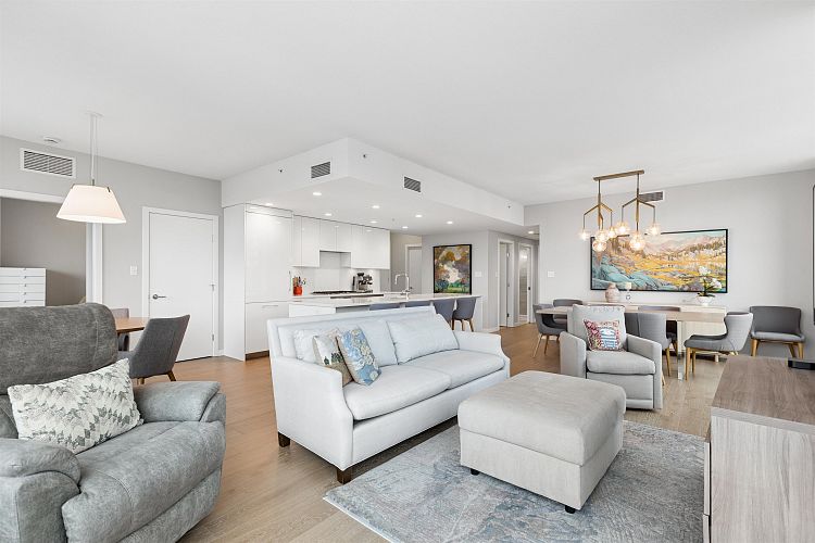 Welcome to THE SPOT - Where luxury meets the ultimate location! This North West facing 3 bedroom, 3 bathroom Plus Den, top floor corner home features spectacular 180 panoramic views of the North Shore Mountains and Vancouver Skyline! With Craftsman inspired finishings throughout, a gourmet kitchen with premium integrated Bosch Appliances, Air Conditioning, Spa-inspired ensuites with double sinks & a soaker tub, California Closets in the primary and pantry and a generous 162 Sq Ft patio, this home is perfect for entertaining, relaxing and everyday enjoyment! Amenities include a concierge, gym and a 10,000 sq ft. rooftop lounge with a garden and playground. This homes Comes w/2 parking spots and 1 storage locker. OPEN HOUSE - SUN MARCH 8th 2-4pm