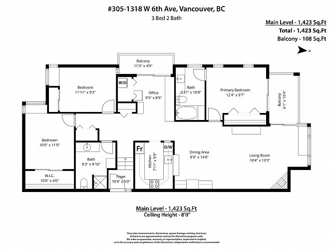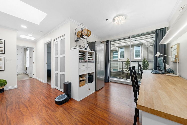 Welcome to Birch Gardens in the heart of Fairview. This spacious top floor 3 bed + den, 2 bath home offers 1,423 sqft of updated living space. Five skylights flood the home with natural light from above, a rare feature in condo living. The renovated kitchen features all new appliances, complemented by updated bathrooms, in-suite laundry, and a bright open layout. Step outside to a private landscaped balcony with uplighting and rock garden details. Includes a new hot water tank, 2 parking stalls, and a storage locker. Pet and rental friendly. Just steps from the future Broadway & Granville SkyTrain station, minutes to Granville Island and West 4th Avenue shopping. A rare combination of space, light, and location in a neighbourhood that keeps appreciating.