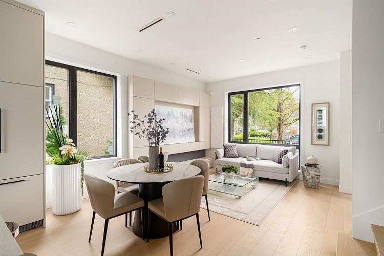 Brand new home 2026 spring. NO strata fee! A curated collection of bespoke Duplex homes on Vancouver's tree-lined Kerrisdale neighborhood. 2 Bed 1 Bath Legal rental suite in basement. Impeccable space designed enables spacious interiors for living. Smart Home systems equipped community, together with spa-like bathrooms, air conditioned and floor heating and more.