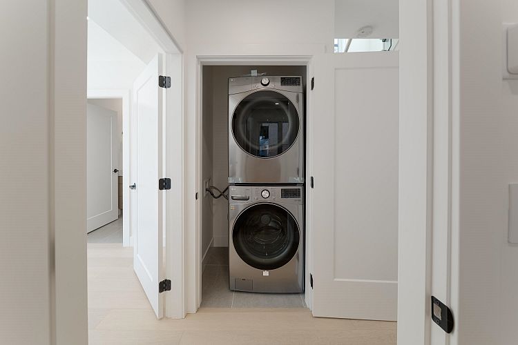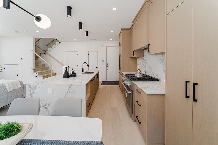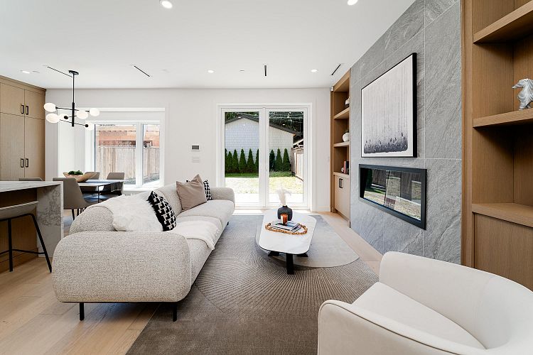 Don't miss out on this spacious and bright BACK 1/2 DUPLEX nested on a quiet street, in Cambie, one of Vancouver's best neighbourhoods. Superior transit, shopping and dining, and next door to Douglas Park with ample open fields, community center, and playground area. This home features functional floor plan, large kitchen with high quality appliances, living / dining space and powder room on main level and 3 bedrooms with ensuites on the second and third level. Large floor to ceiling windows, custom millwork, radiant in-floor heating, HRV, central A/C, security system, 556 sq ft of crawl space that can be used for additional storage, private yard and detached garage. OPEN HOUSE: SUN Oct 19 from 2:30-4:00 PM.