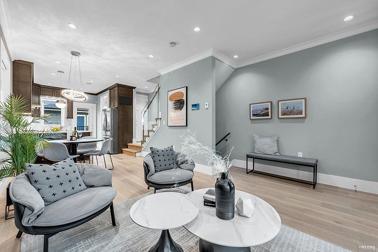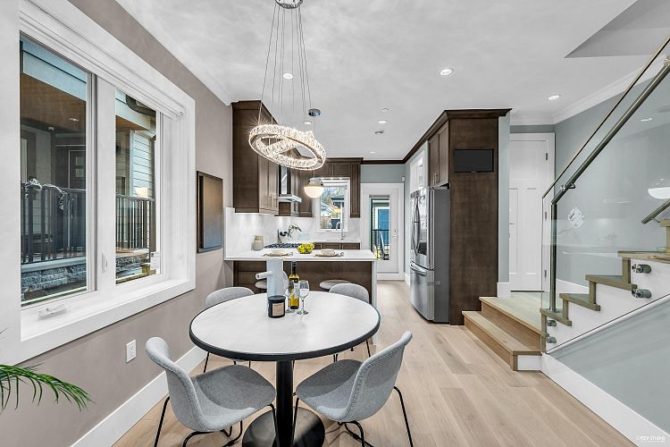 $371K BELOW BC ASSMT!! Stunning half side by side duplex, sitting in the Vancouver's prestigious S Granville neighbourhood. This 5 bed 5 bath modern home offers exceptional design and functionality, engineered hardwood floors, gas-fired radiant in-floor heating. Open-concept kitchen is equipped with S/S appliances, a gas stovetop, and quartz countertops, perfect for both everyday living and entertaining. Craftsmanship residence features HRV, security cameras & built in vacuum. Covered BBQ porch, stone exterior, and private back yard brick paved patio. Walk to Magee Secondary, Maple Grove Elementary, community centre, library, shops & restaurants.10 min to YVR,UBC & Langara.BONUS:legal 1 bed suite w/separate entrance,EV rough in & 145 sqft crawl space for storage.OH SAT/SUN Nov 22/23 @2-4pm