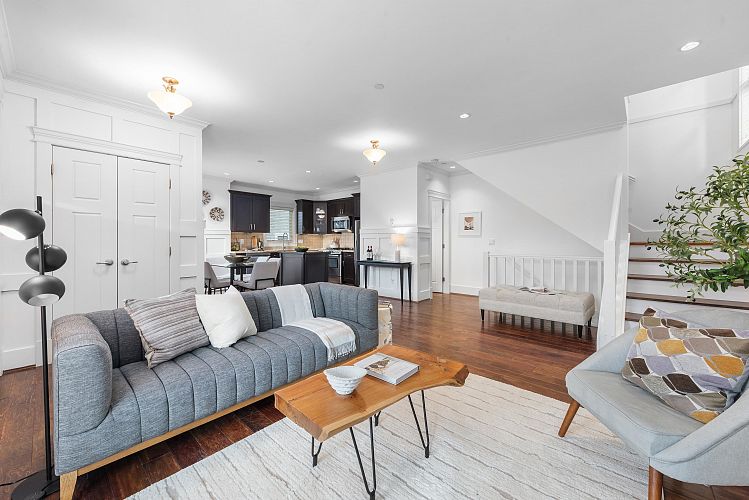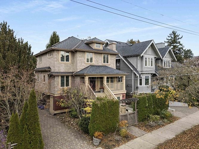 Front Kits Duplex with front porch and attached garage! Rarely will you find this 3 bedroom and 3.5 bath on 3 levels with a smart flexible floor plan featuring a Large Walk out bedroom and ensuite on the main floor w/ outdoor patio, excellent storage options and a true feel of a house. Enjoy a bright, open layout featuring granite countertops, French doors, radiant heated hardwood floors throughout and a gas fireplace. The south-facing deck and private garden create inviting outdoor living spaces. Recent upgrades include a new (2025) boiler/heat exchanger (over $20K) and fresh paint throughout. Be a part of this desirable community, a pet- and rental-friendly non-conforming 3-unit strata, this home truly has it all. Excellent location near General Gordon Elementary and Kitsilano Secondary