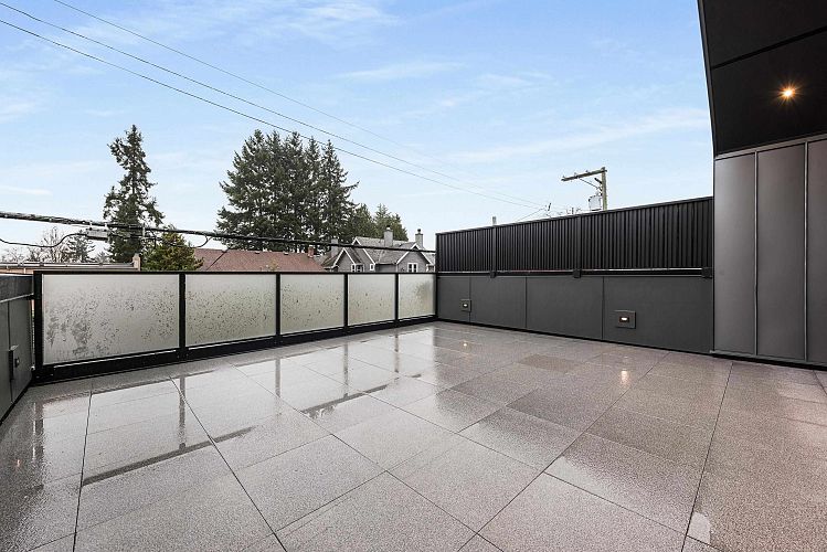 This modern side-by-side duplex offers 4 beds & 3 baths across 1,724sF on 2 levels, with a main floor bedroom with walk-in shower and direct access to parking. Located on a quiet tree-lined street in coveted Cambie Village, it blends thoughtful design with effortless living. Sunlit indoor–outdoor glass panel walls extend the living space to a private patio. The open kitchen, dining and living area is anchored by extensive custom millwork. Upstairs, a serene principal retreat boasts an oversized north-facing deck, walk-in closet and spa ensuite with floating tub and walk-in shower. Interior seamless glass railings keep sightlines open, while a heated crawl space adds incredible storage. Steps to shops, parks, restaurants, Canada Line, plus Simon Fraser & Eric Hamber catchments.
