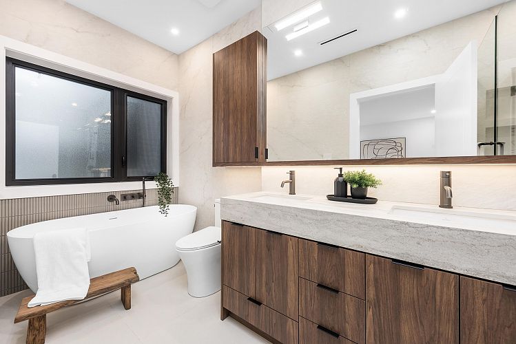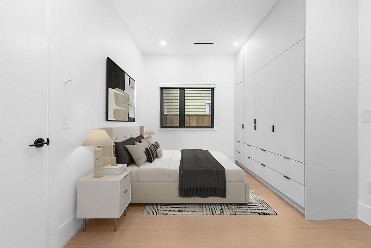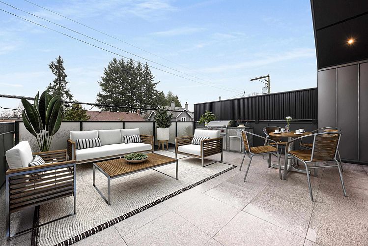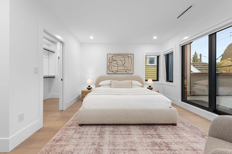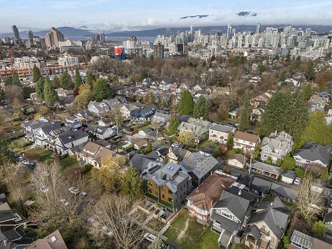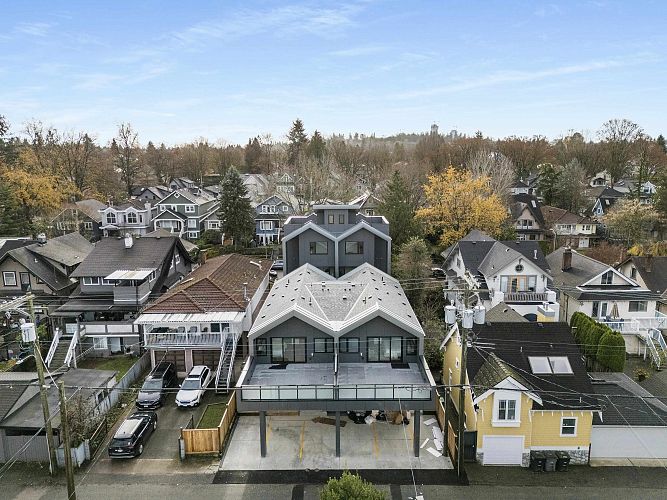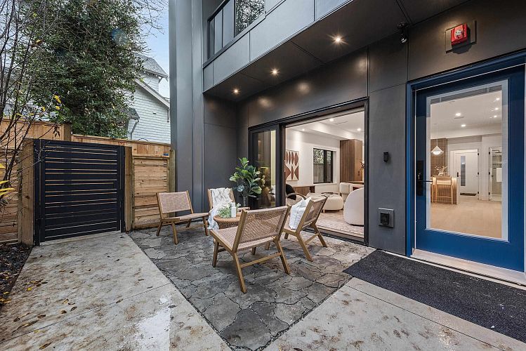 This modern side-by-side duplex offers 4 beds & 4 baths across 1,724sF on 2 levels, with a main floor bedroom with walk-in shower and direct access to parking. Located on a quiet tree-lined street in coveted Cambie Village, it blends thoughtful design with effortless living. Sunlit indoor–outdoor glass panel walls extend the living space to a private patio. The open kitchen, dining and living area is anchored by extensive custom millwork. Upstairs, a serene principal retreat boasts an oversized north-facing deck, walk-in closet and spa ensuite with floating tub and walk-in shower. Interior seamless glass railings keep sightlines open, while a heated crawl space adds incredible storage. Steps to shops, parks, restaurants, Canada Line, plus Simon Fraser & Eric Hamber catchments.