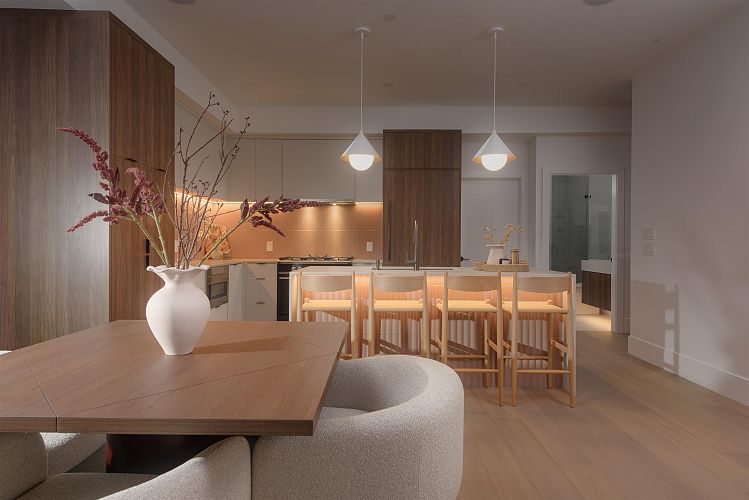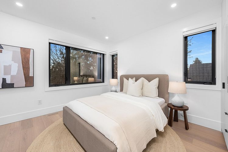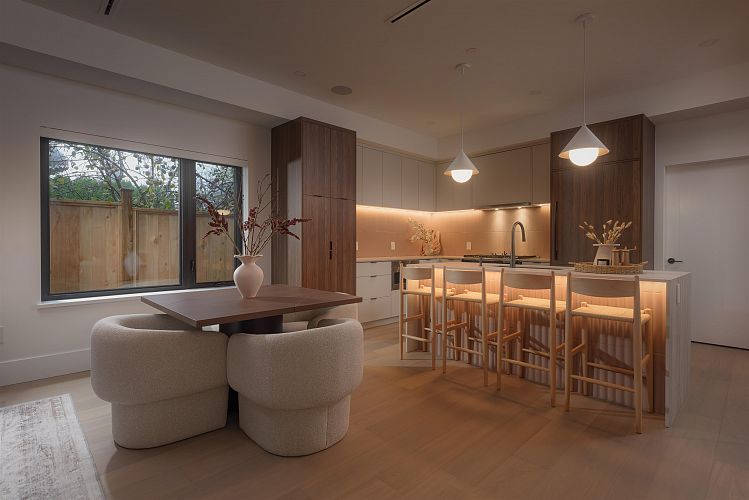 Crafted by Vandwell Developments, this brand-new 4 bed, 4.5 bath 1,969sqft side-by-side half duplex in coveted Cambie Village pairs refined design with effortless indoor–outdoor living. A panoramic private rooftop deck captures sweeping mountain, skyline views and sunsets. Floor-to-ceiling windows flood the main level with light and open to 2 secured patios, perfect for entertaining. Inside, seamless glass railings, built-in sound and a sleek chef’s kitchen create a calm modern backdrop. Upper bdrms enjoy treed and city outlooks, while a heated crawl space offers exceptional storage. All on a quiet, tree-lined street steps to shops, parks, restaurants, Canada Line, plus top public and private schools.