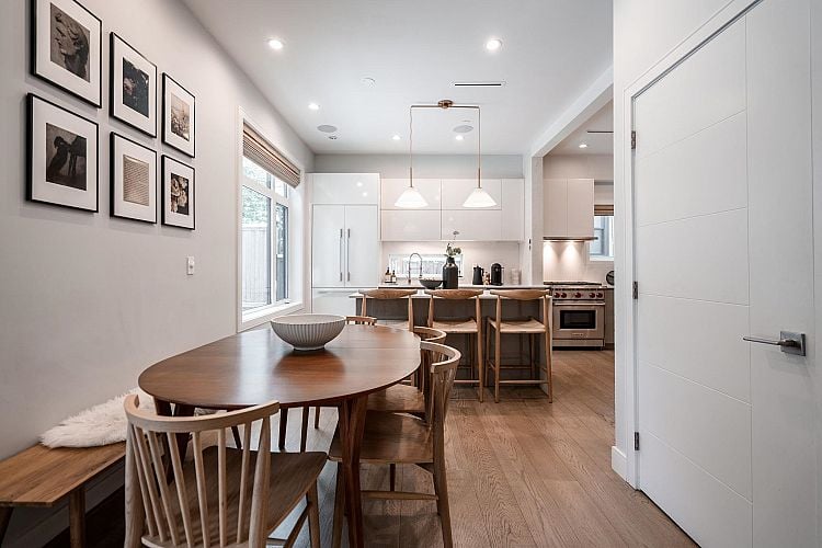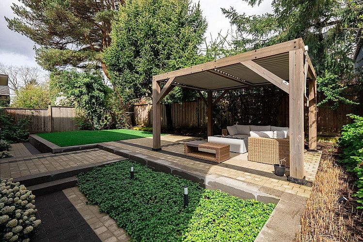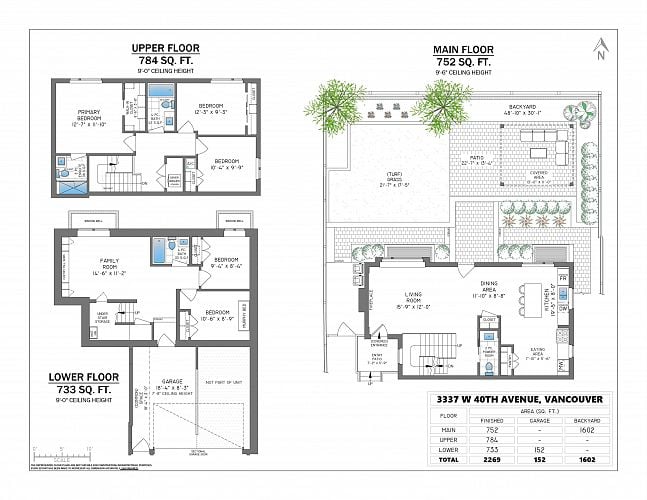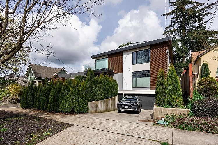 The perfect family home! This private back half-duplex offers ~2,300 sq ft of thoughtfully designed space & your own incredible 1,700+ sq ft sun-filled backyard w/ a well manicured lawn, gazebo & gas fire table. A rare opportunity in Dunbar for buyers seeking new construction, space, and privacy - without the unexpected costs of an older detached house. The main level features generous living and dining areas, while upstairs offers three bedrooms and two baths. Downstairs adds versatility with a family room, full bath, two bedrooms, & plumbing for a potential suite. Chef’s kitchen with Wolf range, quartz counters, & high-end appliances. Radiant in-floor heat, A/C, engineered wood floors, attached garage, 2-5-10 warranty & top school catchments. OPEN HOUSE JAN 25, 2-4PM