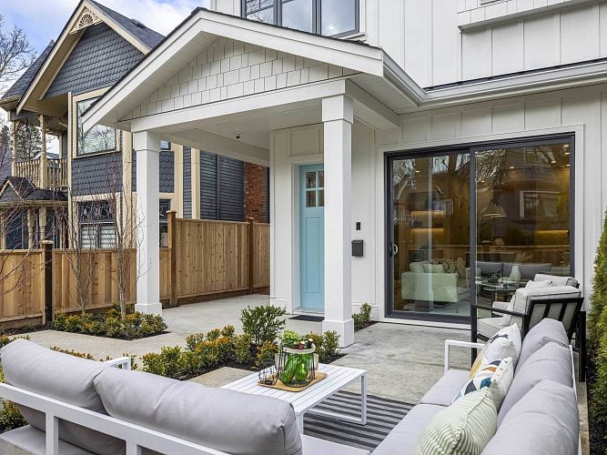 Masterfully crafted by Coastline Projects, this luxury front 1/2 duplex in coveted Dunbar sets a new standard in urban living. It boasts a meticulously designed open floor plan, 10’ ceilings, exquisite engineered oak floors, built-in dining room seating and a gas fireplace. The gorgeous kitchen is a chef’s dream, featuring a Miele fridge/stove, quartz countertops, and custom cabinetry. The second level features all the bedrooms on one floor. The spacious primary bedroom features ample closet space & a beautiful spa-like ensuite. The top floor features a bonus rec room perfect for a unique & cozy retreat. The private landscaped patio is perfect for gatherings. Only mins to St. George’s, Crofton House, UBC & Pacific Spirit Park.