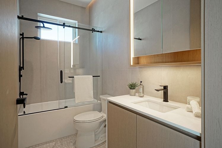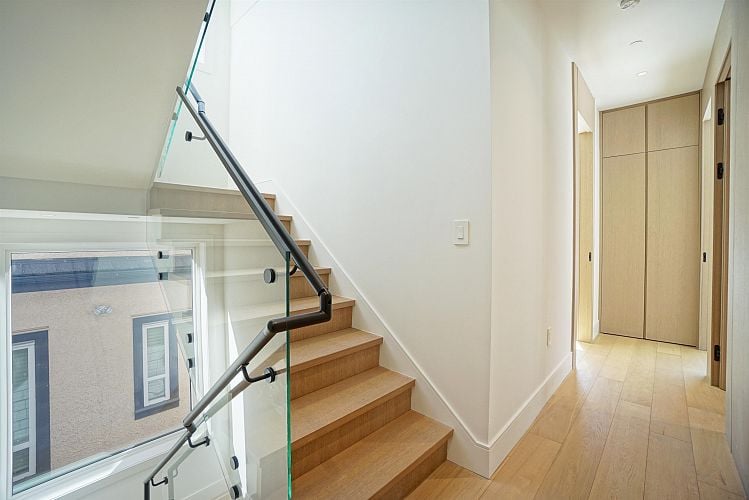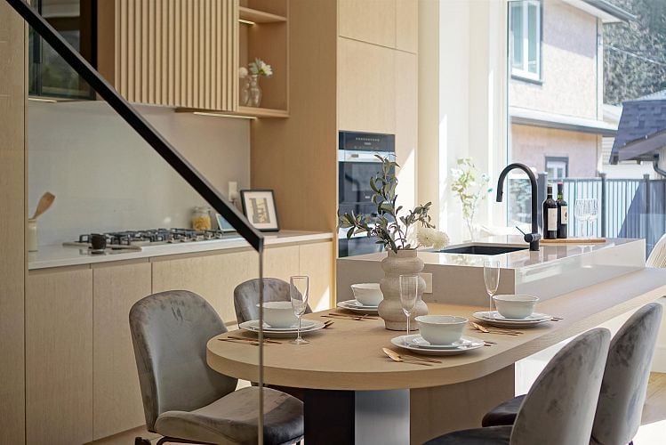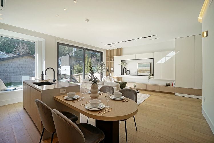 Brand new South Facing duplex located on a quiet, tree-lined street in prestigious West Point Grey. This thoughtfully designed home is minutes to UBC, Jericho Beach, Spanish Banks, and daily amenities along West 10th and Dunbar. Featuring triple glazed windows and door system, 10-foot ceilings, custom millwork, engineered hardwood flooring, and a premium Miele chef's kitchen. Enjoy whole-home radiant floor heating, ultra-quiet A/C, and a fully integrated smart home system with voice and remote control. Durable exterior with New Techwood, metal siding, and Hardie shingles. Oversized sliding doors open to a private landscaped garden. EV-ready garage and crawl space storage included. Top school catchment: Queen Elizabeth Elementary and Lord Byng Secondary.